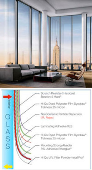 Our films reject the heat and glare of the sun which passes through window panes. The building is cooler, air conditioning costs are reduced, and work is more productive. We produce selective films using “sputtered” technology, for better control of solar energy.